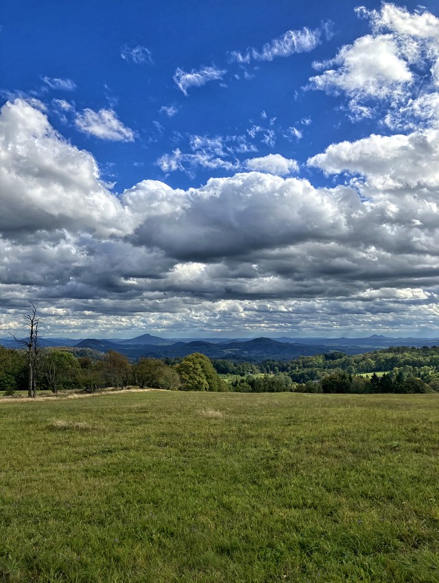 To nejtěžší na dnešní trase mám snad již za sebou a nyní se vydávám sjezdem do obce Prácheň, kde se na krátkou chvíli zastavuji u Panské skály (Varhany). Následně pokračuji po relativně málo frekventované silnici směrem na Polevsko, ze které na vyhlídce před Polevskem sjíždím ze silnice a míjím Polevský vrch (627 m n. m.) s vyhlídkou na České středohoří, ale zároveň také Ralskou pahorkatinu. Dále pak směřuji na žlutou turistickou trasu s parádním výhledem na kopec Klíč, která mě následně zavede k rozcestníku Pod Medvědí hůrkou, kde odbočuji na zelené značení a přijíždím na Jedličnou.
