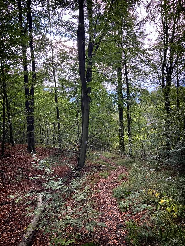 Přibližně po kilometru jízdy se obloukem dostávám opět na dohled výraznému kopci Klíč a následně se připojuji na modrou turistickou cestu (533 m n. m.), kde znovu pokračují ve stoupání do dalšího nekonečného kopce, tentokrát přímo pod Velkým Bukem. Po nějaké době usilovného šlapání se odpojuji z modrého značení, pokračuji dále v jízdě pod Velkým Bukem a míjím nejvyšší bod dnešní trasy (644 m n. m.).